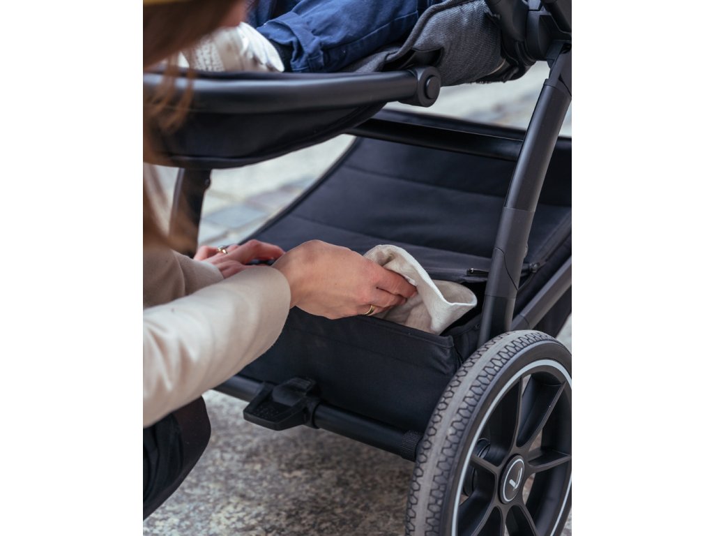 Při navrhování Tricku jsme nezapomněli ani na pohodlí rodičů zajištěné nastavitelnou rukojetí, pohodlnou taškou, lehkou konstrukcí, brzdou šetrnou k botám a držákem na pohár, který je součástí sady. Trick je navíc vybaven prostorným, uzavřeným košem, do kterého se vejdou všechny vaše věci, jako jsou potraviny nebo další přikrývky atd.