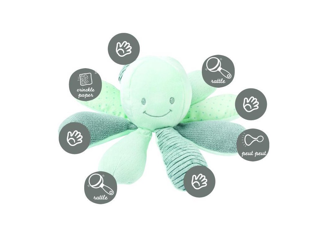 NATTOU Hračka chobotnička edukační 8 aktivit Lapidou Mint zelená