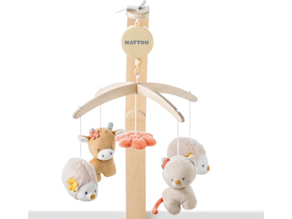 Nechte své dítě užívat si uklidňující tóny hudebního mobilu, zatímco se okouzlující ježek Zoë, zlobivá kočka Lana a veselá kráva Mila jemně točí. S těmito roztomilými zvířátky je mobil nejen poutačem v dětském pokoji, ale také podporuje sluchové vnímání vašeho dítěte díky vestavěné hudební skříňce, která pokaždé zahraje jemnou melodii „Le-La-Lu“. Tento hudební mobil můžete bezpečně a snadno připevnit k dětské postýlce, ohrádce nebo na hřiště. Všechny figurky jsou odnímatelné a lze je prát v pračce.