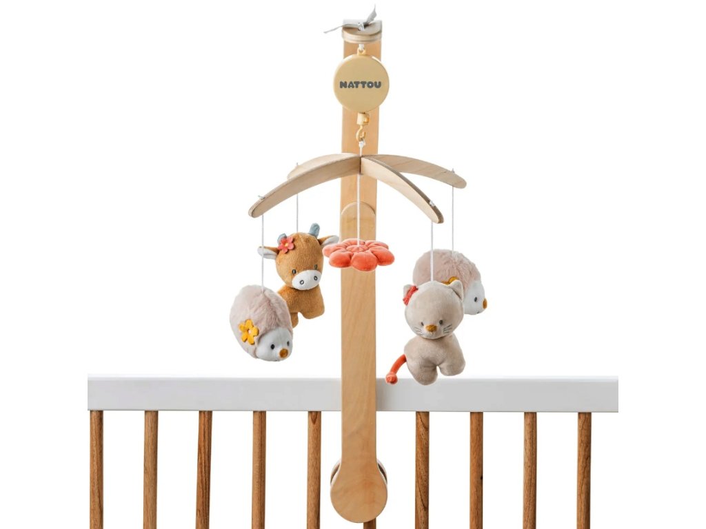 NATTOU Kolotoč hudební nad postýlku dřevo Mila, Zoe & Lana, 0m+