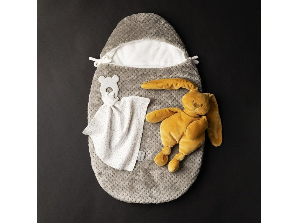 NATTOU Kousátko silikonové bez BPA s bavlněnou dečkou 28 x 28 cm grey