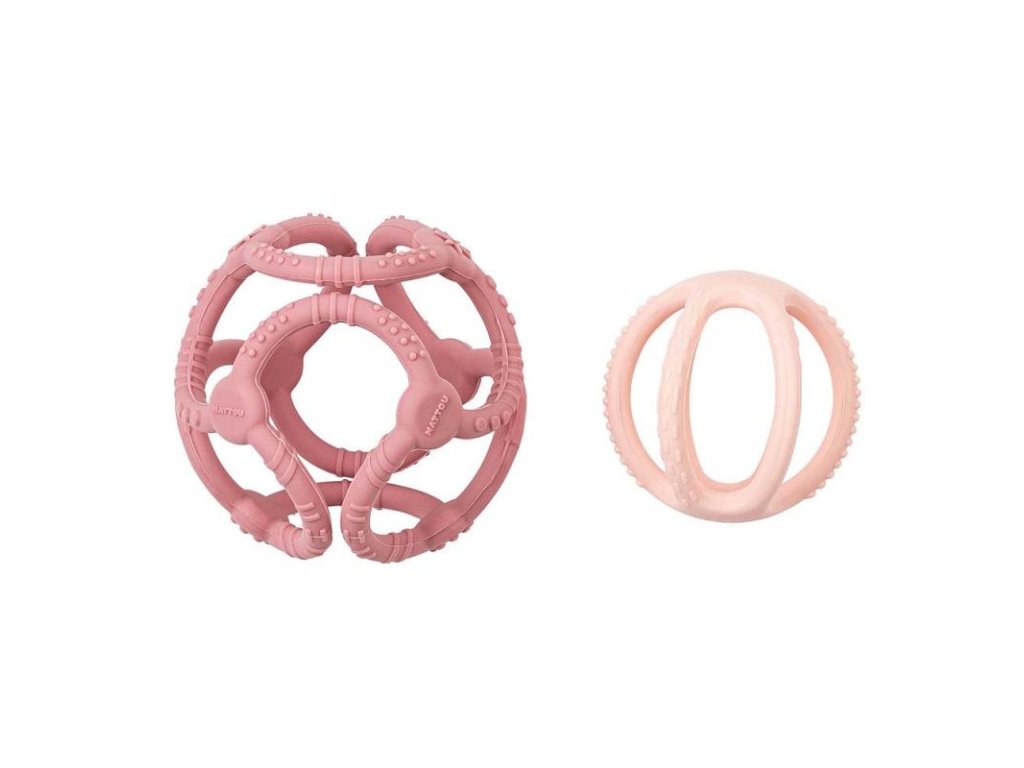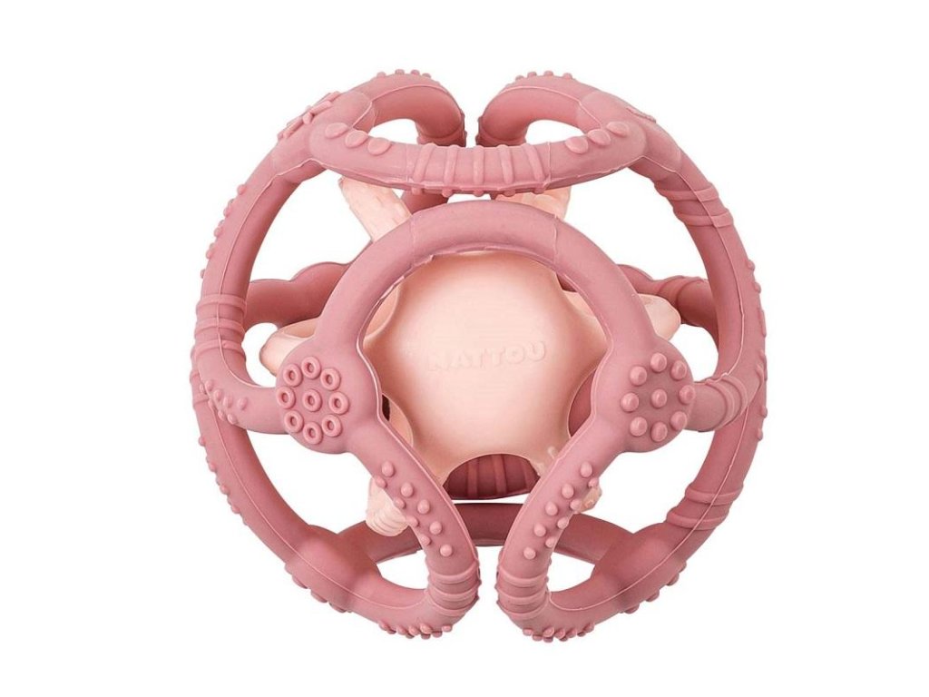 NATTOU Kousátko silikonové míč 2v1 bez BPA 10 cm růžová