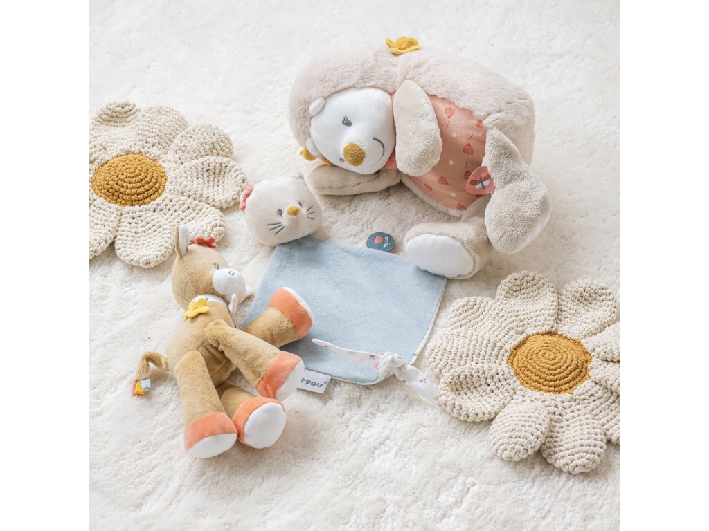 Krásná pusinka vyrobená z polyesteru a bavlny, která je příjemná a stimuluje hmat dítěte.