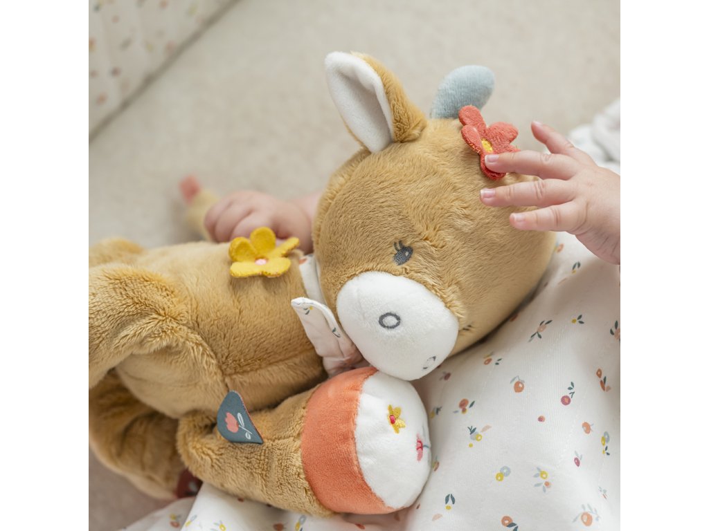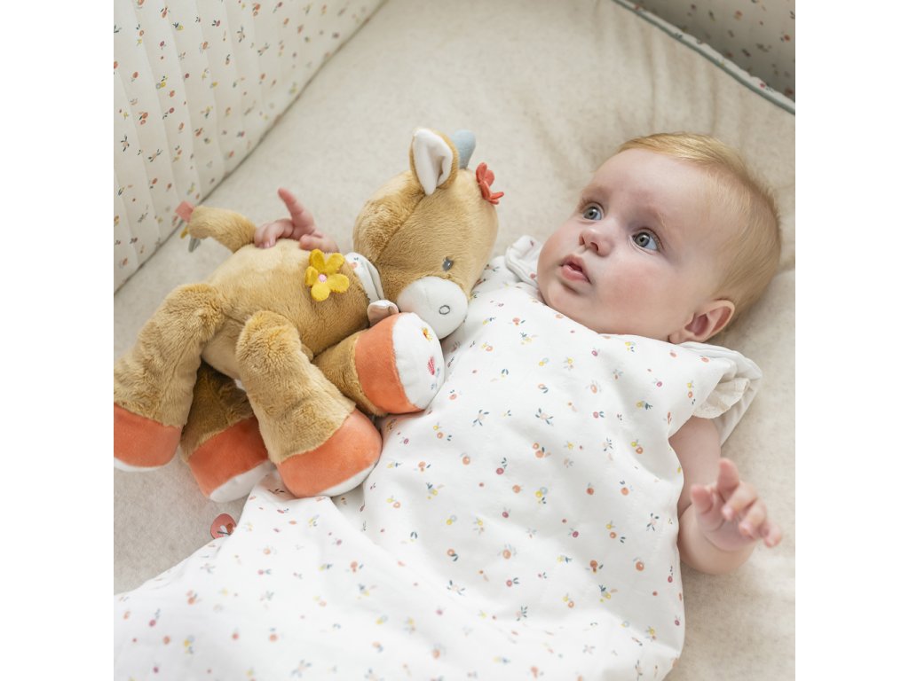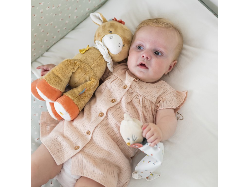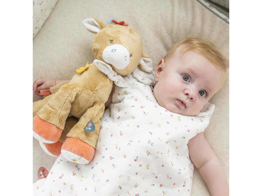 Krásná pusinka vyrobená z polyesteru a bavlny, která je příjemná a stimuluje hmat dítěte.
