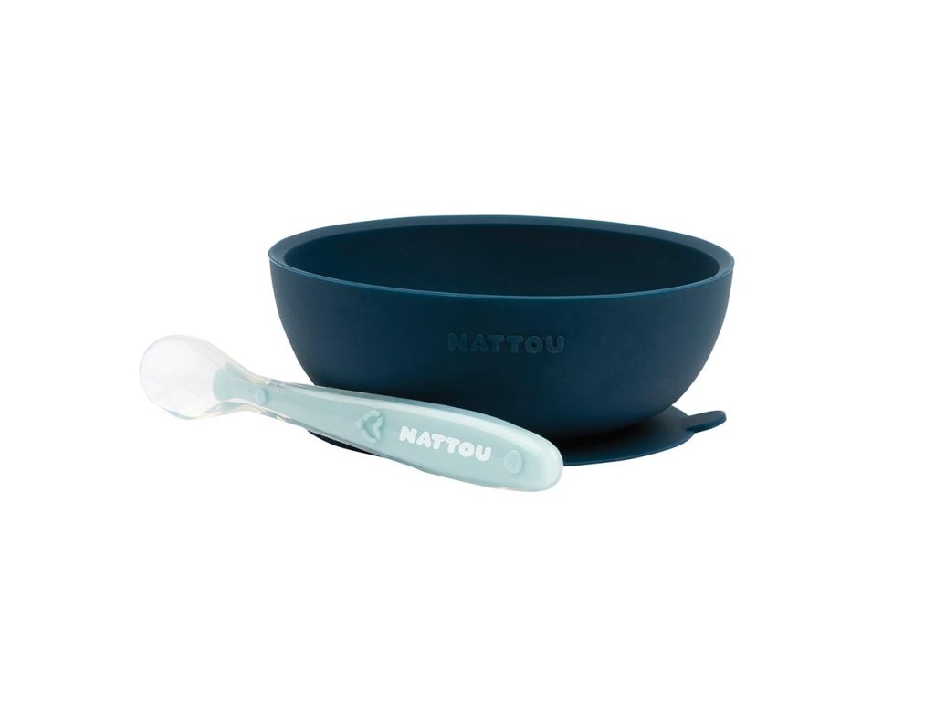 NATTOU Set jídelní silikonový 2 ks: miska a lžička - Marina modrý