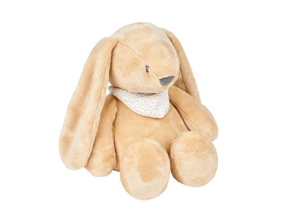 Přítulná plyšová hračka na spaní Nattou ve tvaru zajíčka s vyšívanou tvářičkou a jemným bryndákem. Zajíček na spaní Nattou je krásné měkké kvality s příjemnou výplní. Spící zajíček má v bříšku světýlko, které se může měnit mezi sedmi barvami a zvukem, s bílým šumem, mořem, tlukotem srdce a dvěma uklidňujícími ukolébavkami, které pomáhají zajistit klidný spánek. Zvuky spícího zajíčka se aktivují automaticky, když uslyší pláč dítěte a zvuky automaticky přestanou po 15 minutách. Světlo spícího zajíčka vychází z LED diody v bříšku, takže světlo je tlumeno textilií zajíčka a nepřehřívá se, tedy světlo může bez problémů svítit celou noc. Plyšový zajíček má 8-hodinovou baterii a nabíjí se pomocí přiloženého USB kabelu.