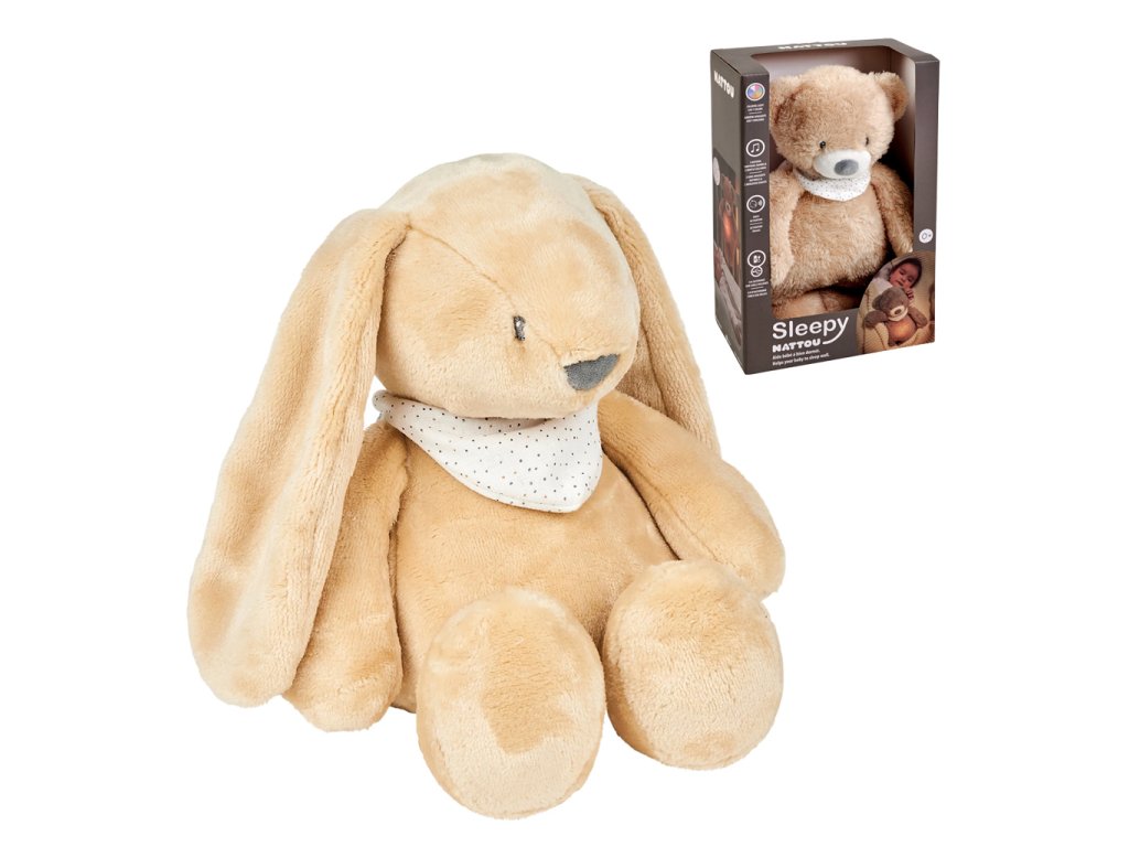 NATTOU Usínaček plyšový hudební se světýlkem a senzorem pláče 4v1 Sleepy Bunny Pale Brown