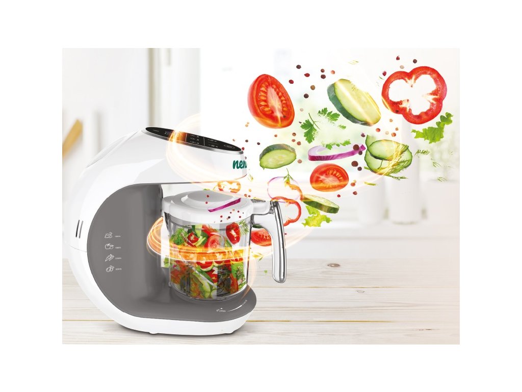 - Mixér je navržen s ohledem na maminky, které si cení pořádku a pohodlí. Už nemusíte připravovat ingredience a jídlo v páře v samostatných hrncích. Neno Cibo to všechno udělá za vás a ušetří vám čas při úklidu.