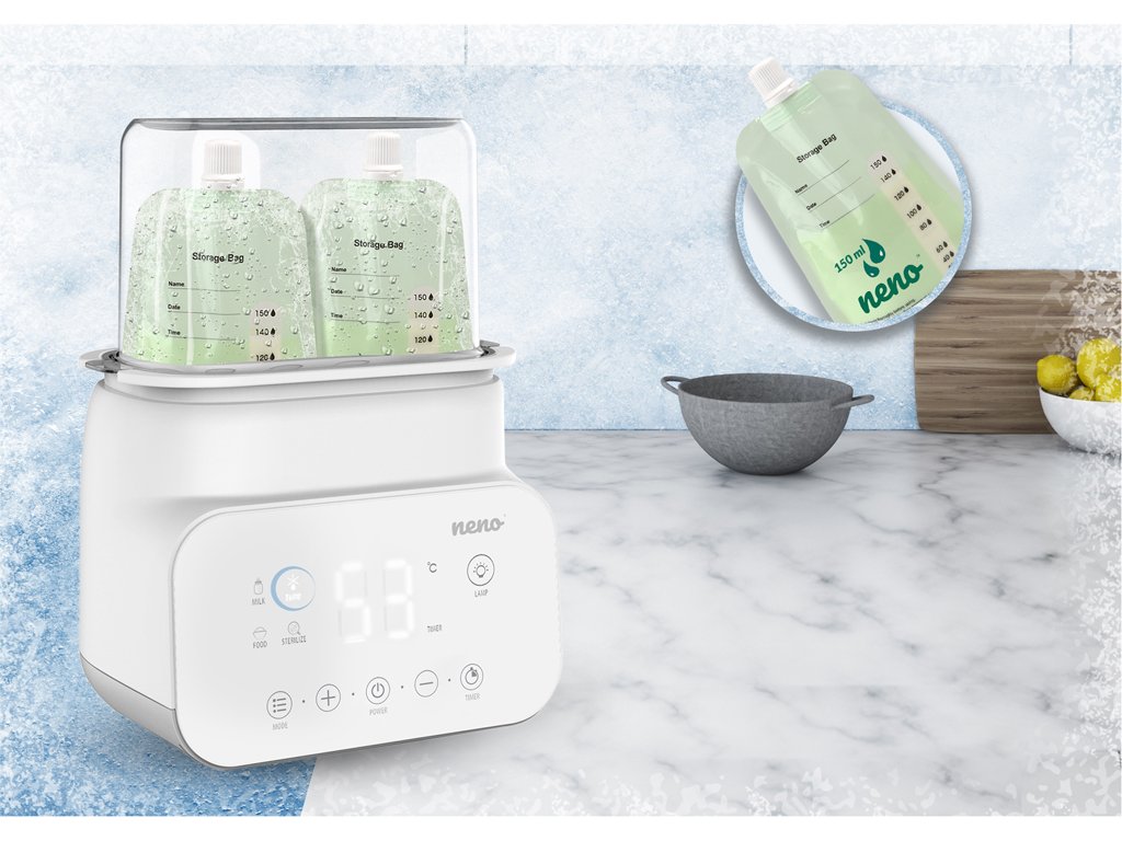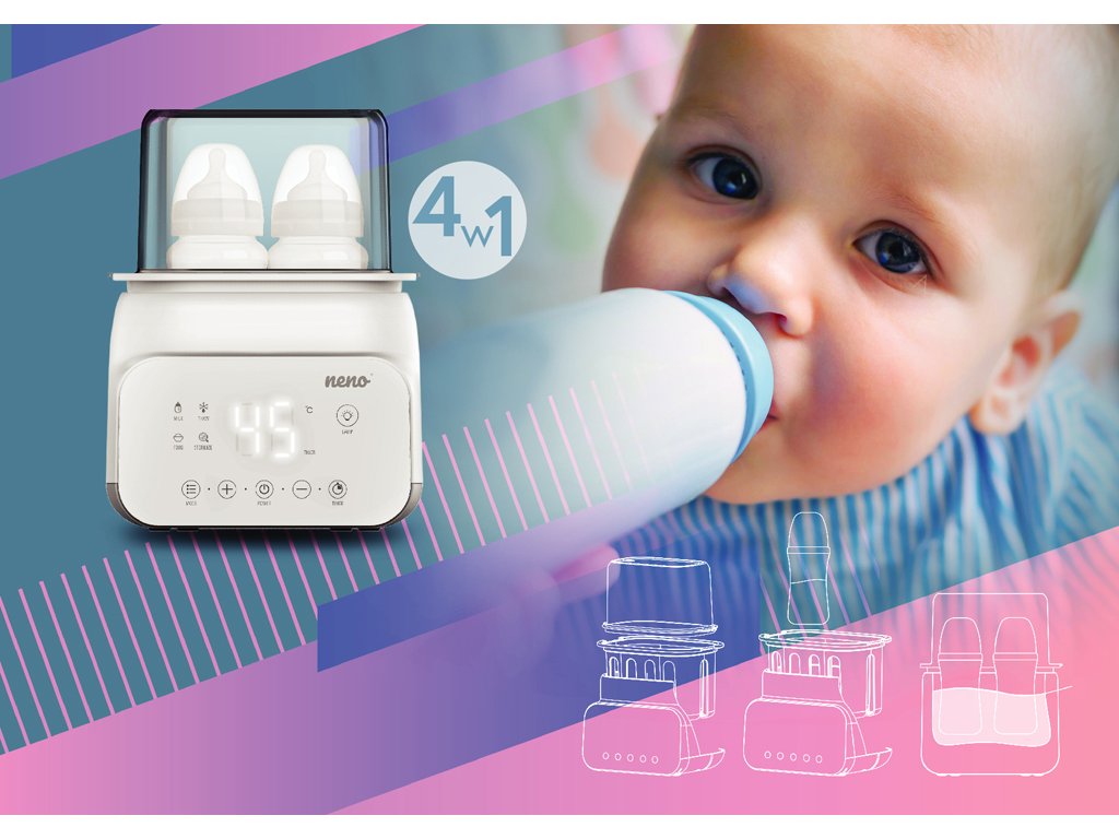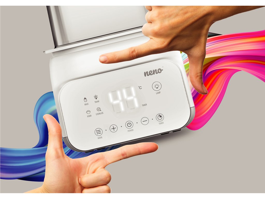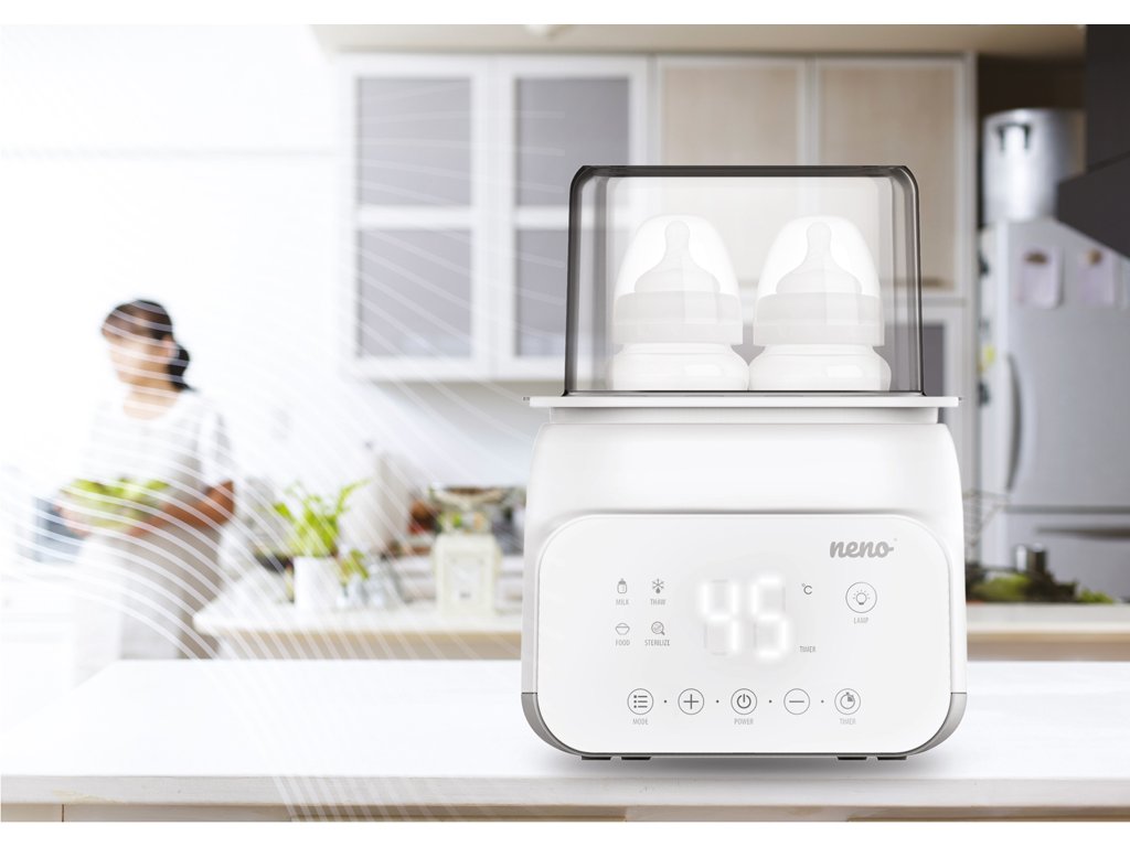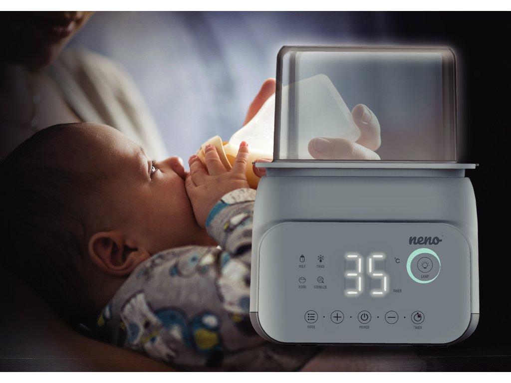Neno Vita je multifunkční přístroj, který sterilizuje, ohřívá mléko, ohřívá jídlo, udržuje teplotu a rozmrazuje. Kromě toho má moderní a minimalistický design, přehledný LCD displej a velká navigační tlačítka, díky kterým se snadno používá.