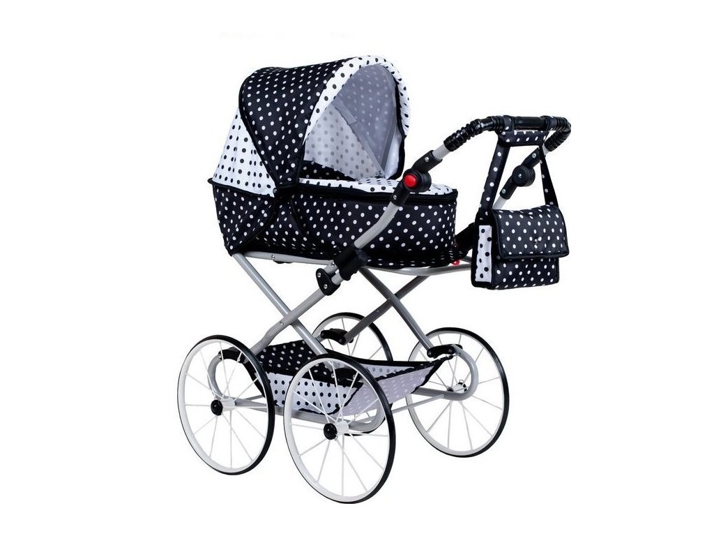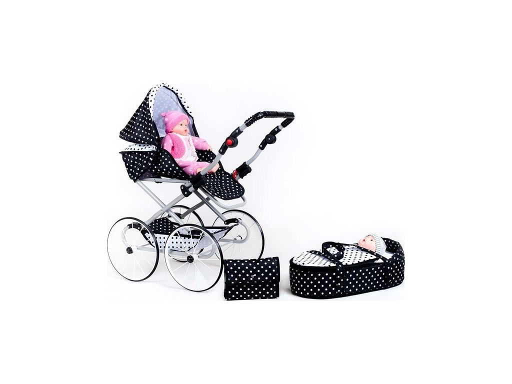 NEW BABY Dětský Retro kočárek pro panenky 2v1 Natálka bílo-černý