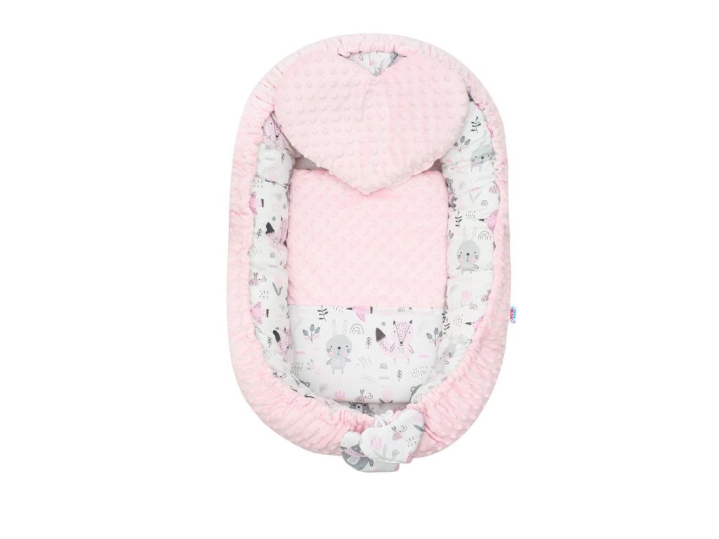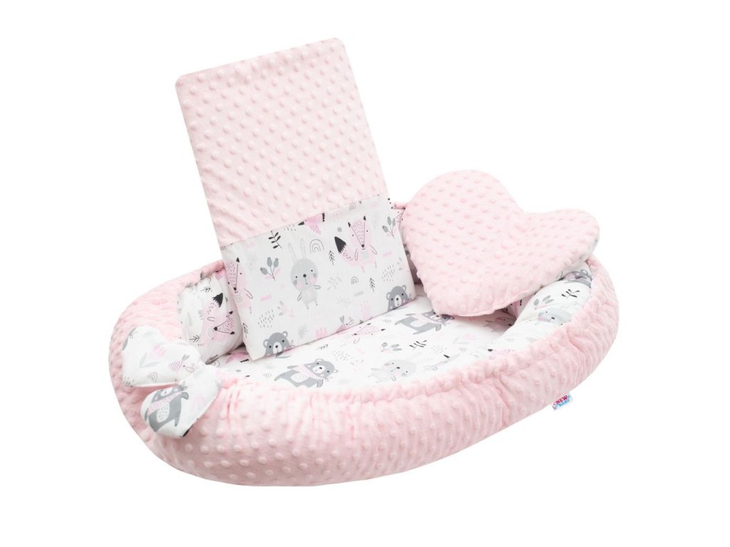 NEW BABY Luxusní hnízdečko s polštářkem a peřinkou New Baby z Minky růžové