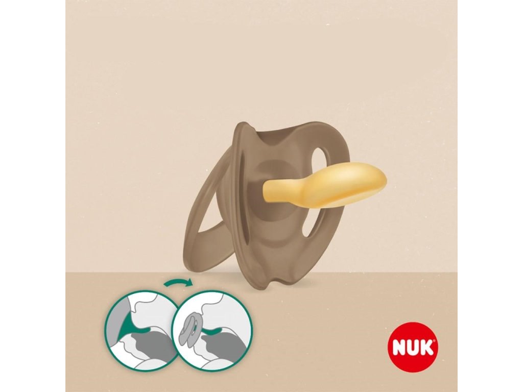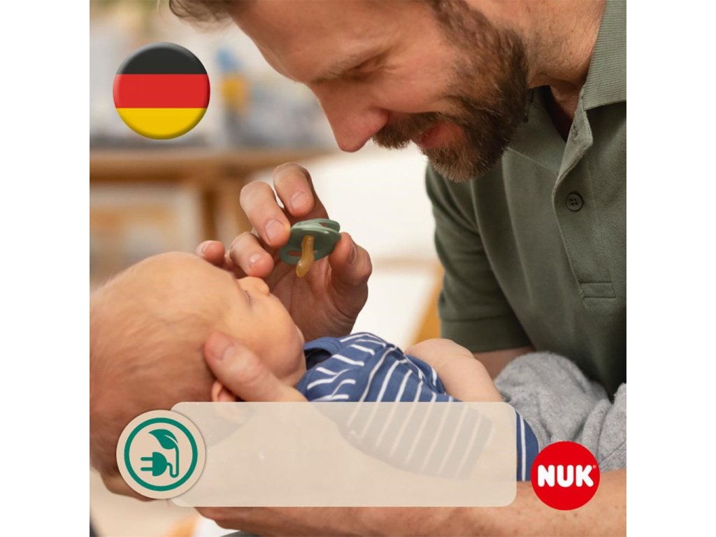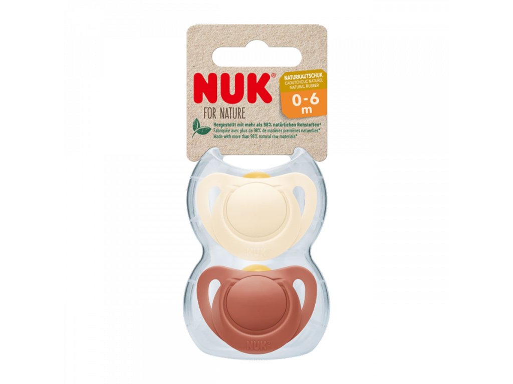 Kojenecké šidítko z přírodního kaučuku NUK For Nature 2/box 0-6 měsíců. Tyto dudlíky NUK jsou vyrobeny z přírodního kaučukového latexu a kompletně vyrobeny v Německu. Samozřejmostí je, že neobsahují BPA a jsou v souladu evropskou bezpečnostní normou EN1400. NUK for Nature tvoří přírodní suroviny minimálně 98 %. Pevné části vyrábíme z udržitelných plastů. Přírodní původ je nezávisle certifikován. Měkký náustek je vyroben z čistého přírodního kaučuku. Obnovitelná surovina 100% rostlinného původu je velmi měkká, teplá a mimořádně pružná. Originální tvar NUK je také inspirován přírodou - nahoře zakulacený, dole plochý. Dudlík NUK for Nature se proto snadno přitiskne k podnebí a nechá dostatek místa pro jazyk. Bez BPA, 2 kusy v balení, baleno pouze v papíře - obal lze vyhodit do tříděného odpadu. Latexové dudlíky by se měly měnit každé 1-2 měsíce, nebo nejpozději, když začnou lepit.