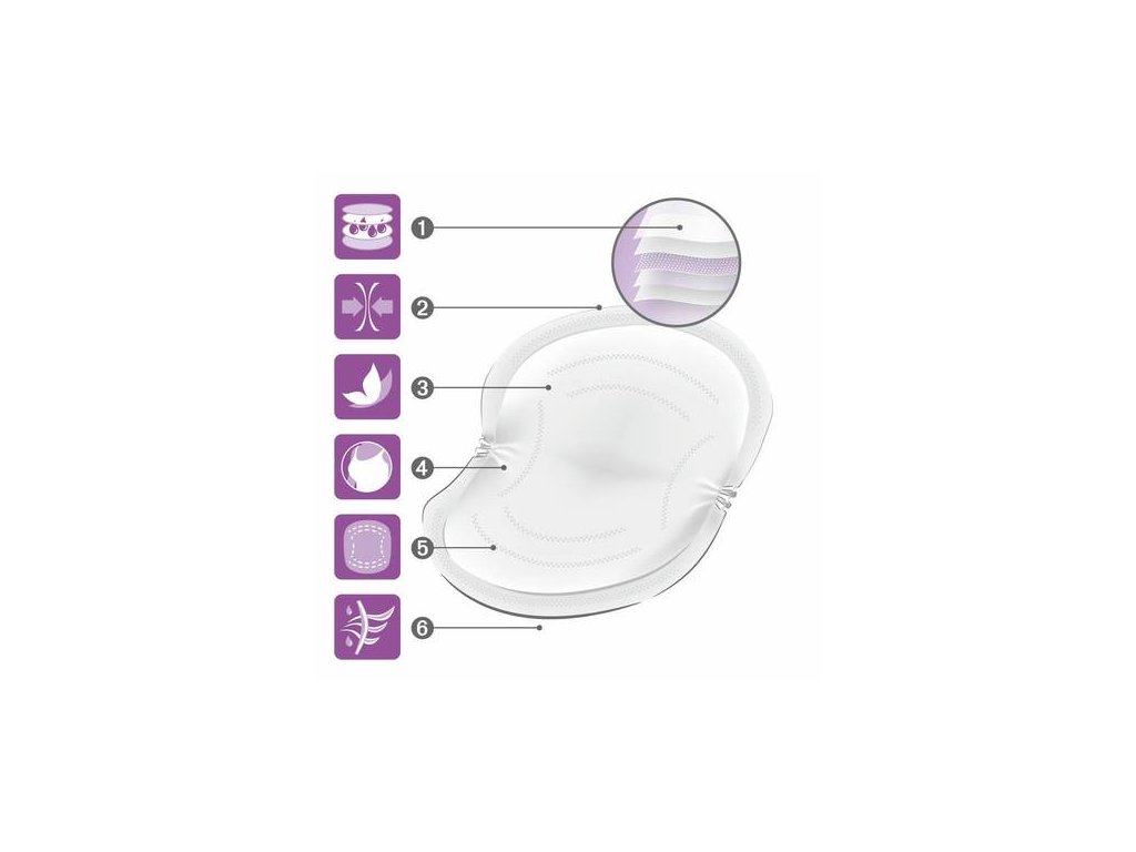 Vysoce savé prsní vložky se spolehlivou absorbující fleecovou vrstvou zadrží únik mateřského mléka, aby na vašem oblečení neskončila ani kapka. Polštářky perfektně sedí na místě a jsou šetrné k pokožce. Kvalitní materiál zajišťuje maximální účinnost a komfort. Jednorázové vložky doporučujeme měnit dle potřeby.- Extra tenké - 2 mm