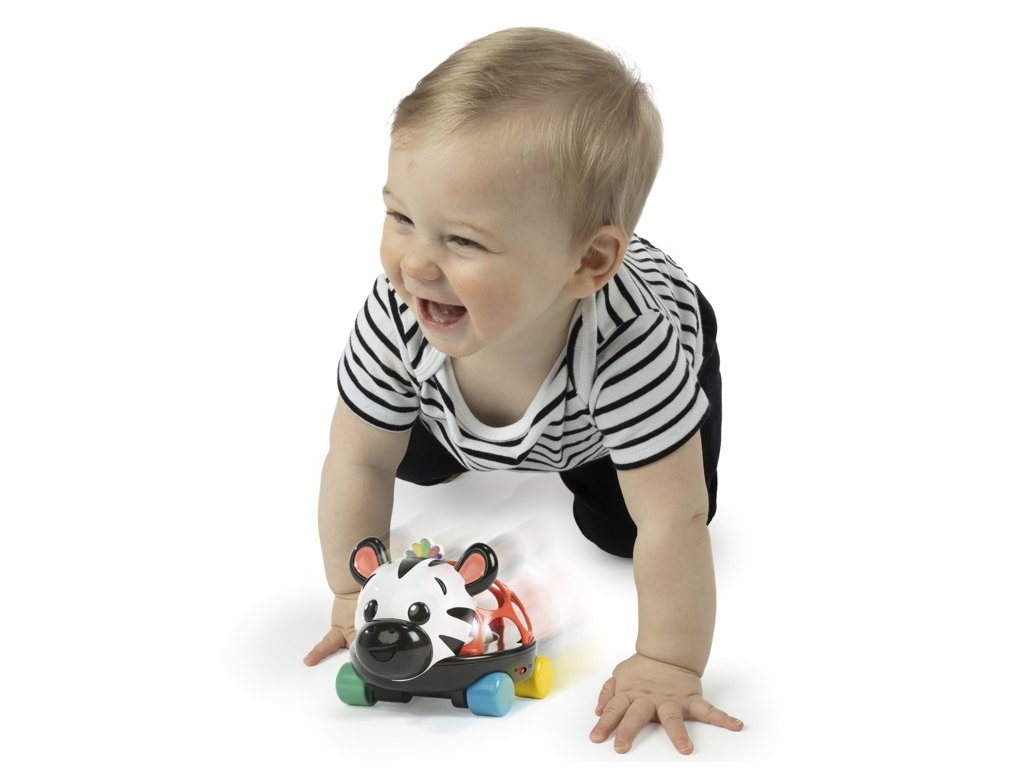 Pomozte dítěti objevovat s hračkou a chrastítkem Baby Einstein Curious Car Zen Oball. Toto zářivé autíčko má světla a flexibilní rám, který dítěti umožní snadno uchopit a kutálet tuto barevnou hračku. Díky videím a knihám může zebra Zen od Baby Einstein pomoci miminku objevovat nové pohledy, zvuky nebo se zapojovat do her. Když dítě tlačí auto, rozsvítí se barevná světla kopule, aby odměnila dítě a podpořila pochopení příčin a následků! Ohebný rám pomáhá podporovat rozvoj jemné motoriky, když děti ve věku od 3 měsíců hračku uchopí a zatřesou jí. Tato lehká hračka je ideální při hře na bříšku, hru vsedě nebo objevování na cestách a je skvělým dárkem pro malého chlapce nebo dívku. Otírejte vlhkým hadříkem.