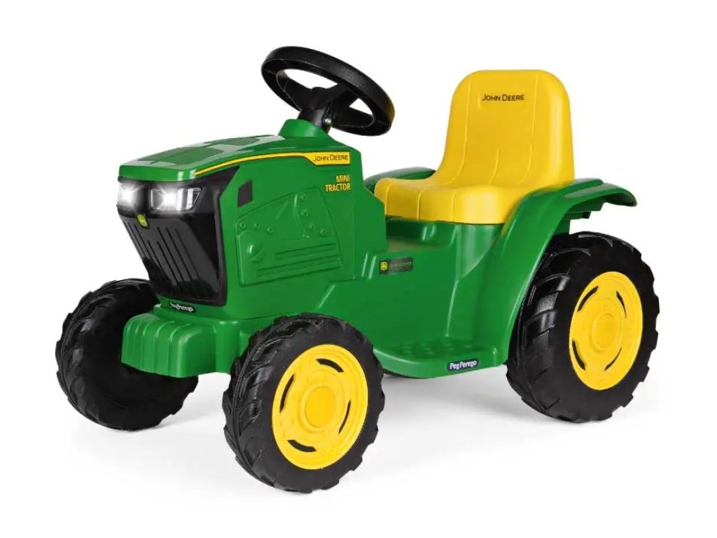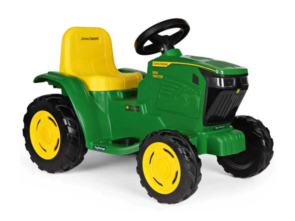 John Deere Mini Tractor s lithiovou baterií od italské firmy Peg Pérego je vyráběn v licenci nejslavnějšího amerického traktoru na světě John Deere. Je určen pro děti od 1 roku, které rády tráví svůj čas v přírodě. Akcelerátor a brzda je v jednom pedálu. Stlačením pedálu se rozjíždí, uvolněním automaticky brzdí. Traktor je vybaven předními LED světly - přesně jako u skutečného traktoru, klaksonem, startovacím tlačítkem se zvukem motoru, tlačítkem ozvučení se 3 melodiemi a indikací nabití baterie. Povrch kol zajišťuje optimální trakci na zpevněném terénu a umožňují stoupání do 5%. Volitelným příslušenstvím je přívěs J.D.Stake Side.