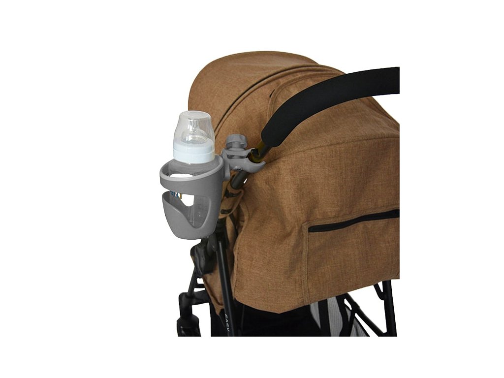 Praktický držák na nápoje, který se jednoduše připojí ke kočárku.