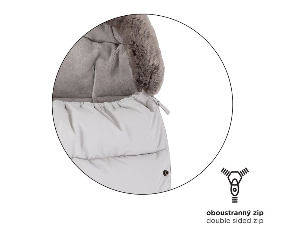 - Regulace teploty díky zipům, které jsou po stranách celého fusaku (lze odepnout celá horní část a spodní část fusaku lze použít jako samostatnou vložku).