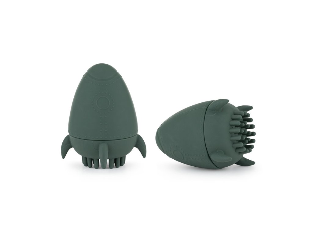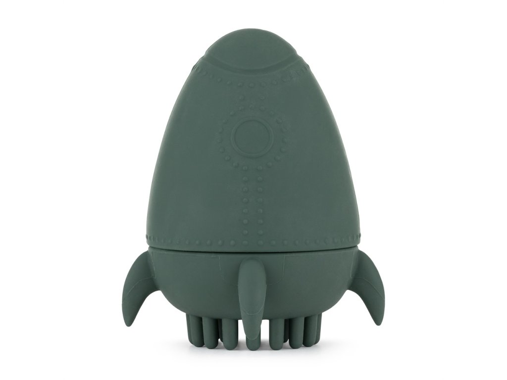 PETITE&MARS Hračka silikonová do vody s kartáčkem Splashy Rocket Misty Green 6m+