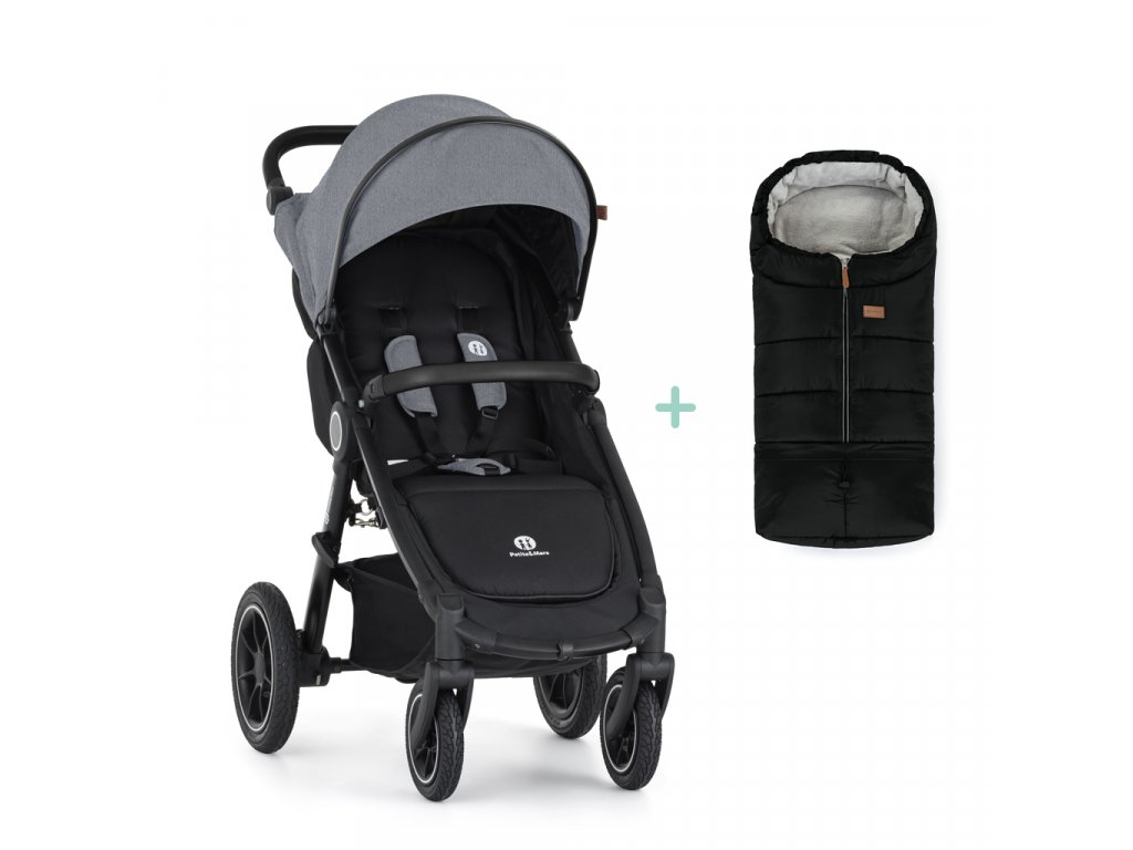 PETITE&MARS Kočárek sportovní Street2 Air Black Ultimate Grey + PETITE&MARS fusak Jibot