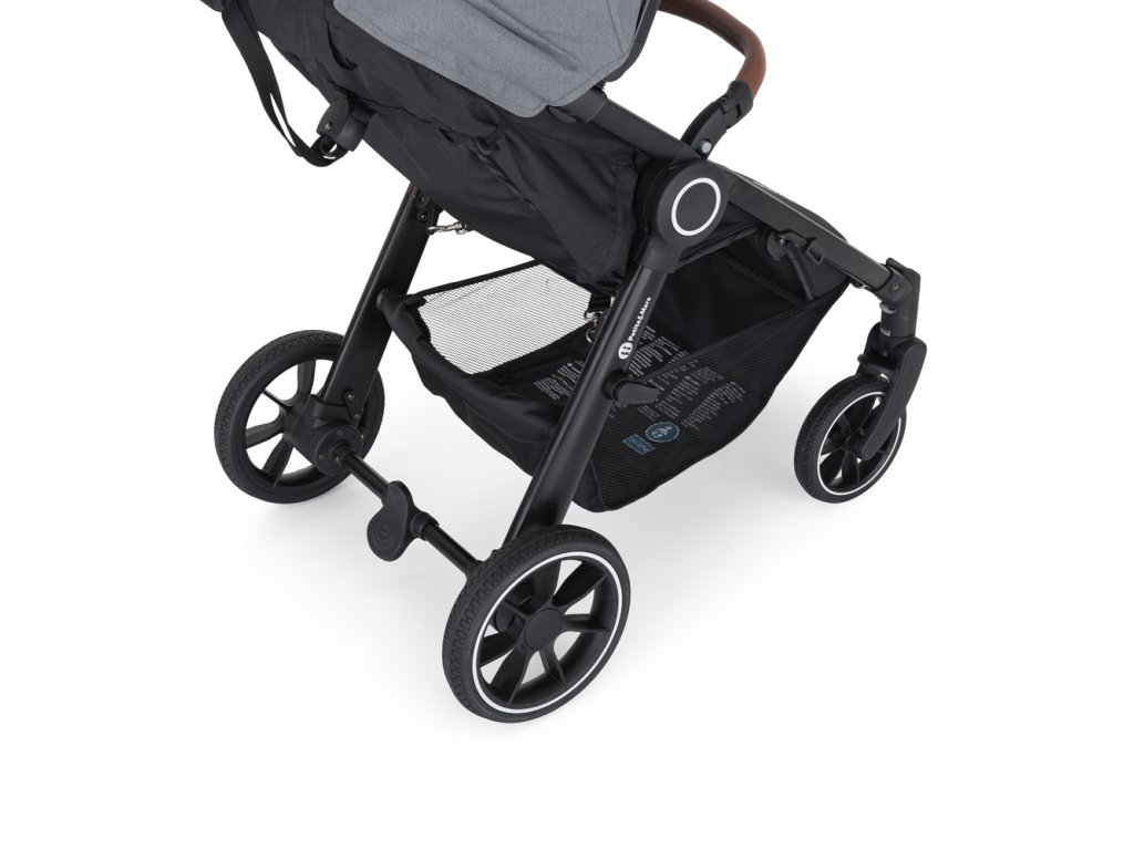 - Kvalitní úchyt kol, který zajišťuje stabilitu kočárku během jízdy.