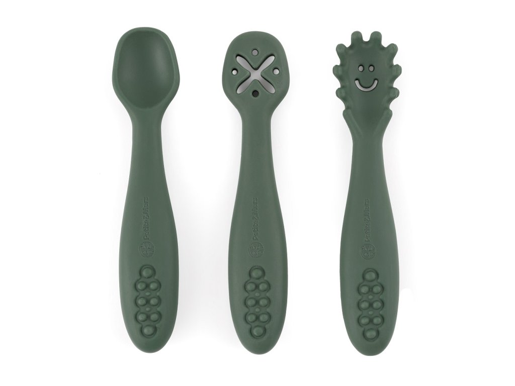 PETITE&MARS Set 3 ks silikonových tréninkových lžiček Take&Match Misty Green 6m+