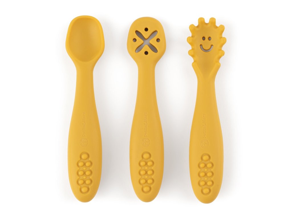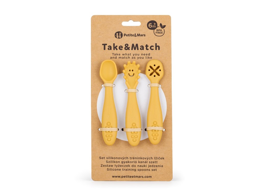 PETITE&MARS Set 3 ks silikonových tréninkových lžiček Take&Match Intense Ochre 6m+