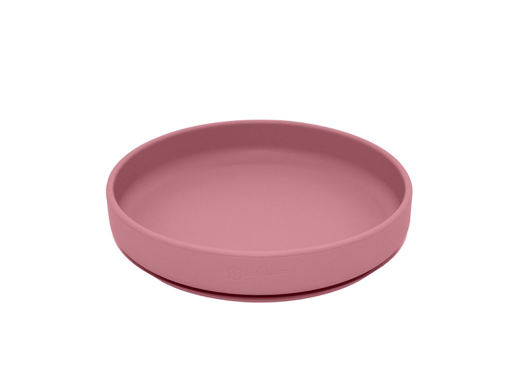 PETITE&MARS Set jídelní silikonový TAKE&MATCH 2 ks talíř + příbor Dusty Rose 6m+