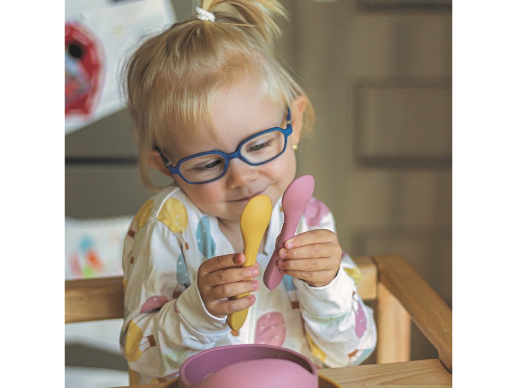 Sada sestávající z vidličky a lžičky je celá vyrobena z potravinářského silikonu bez obsahu BPA. Díky tomu může vaše dítě jíst příborem teplá i studená jídla. Díky pružnému silikonu je příbor ideální pro citlivé dásně malého dítěte. Příbor je vhodný pro děti od 6 měsíců, které se seznamují s pestrou stravou, a pro ty, které se již úspěšně učí jíst samy. Zaoblené tvary a malé rozměry usnadňují děťátku jejich uchopení a tím i papání.