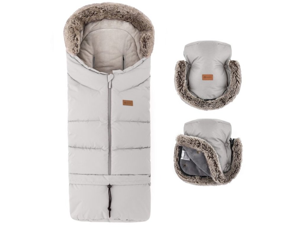 PETITE&MARS Set zimní fusak Arctic 4v1 + rukavice na kočárek Furry Champagne Shower 110cm