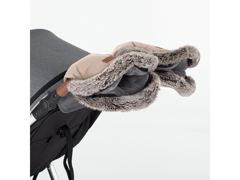 Kožešinové rukavice jsou ideálními společníky na zimní procházky, které zpříjemní i ty nejchladnější dny. Díky dvěma samostatným částem lze snadno připevnit na jakýkoliv model kočárku, bez ohledu na to, zda se jedná o kočárek s pevnou rukojetí nebo golfový kočárek se samostatnými rukojeťmi. Kromě toho voděodolná úprava účinně chrání před sněhem a lehkým deštěm, zatímco teplá kožešina poskytuje ochranu před mrazivým větrem.