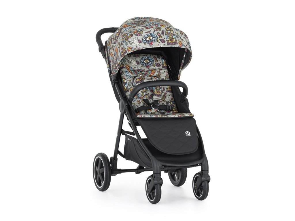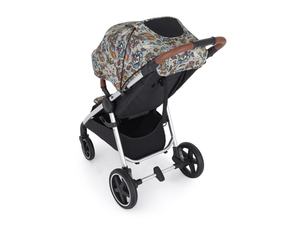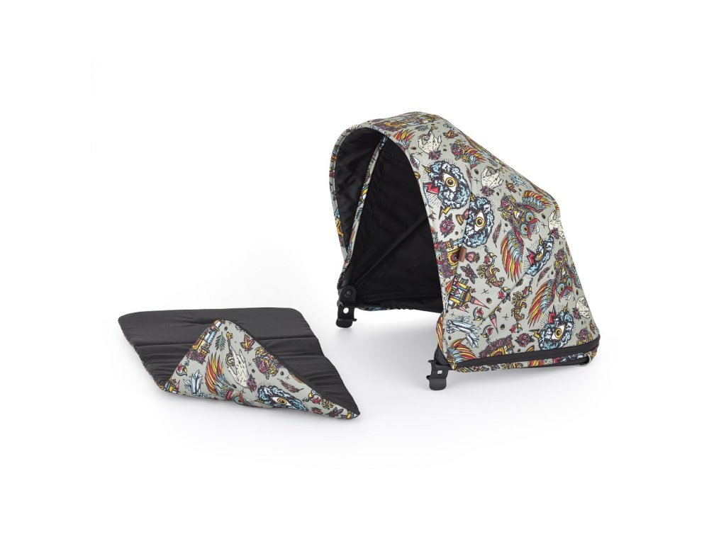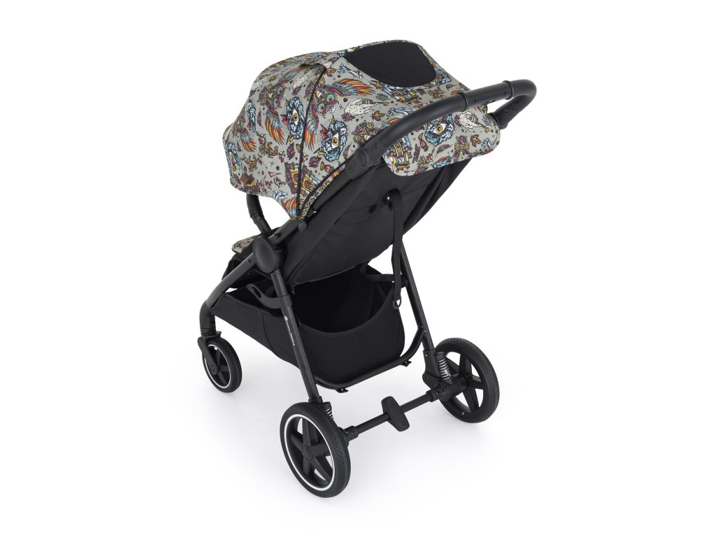 - Prodlužovací stříška s kšiltem je podšita stylovou vzorovou látkou.