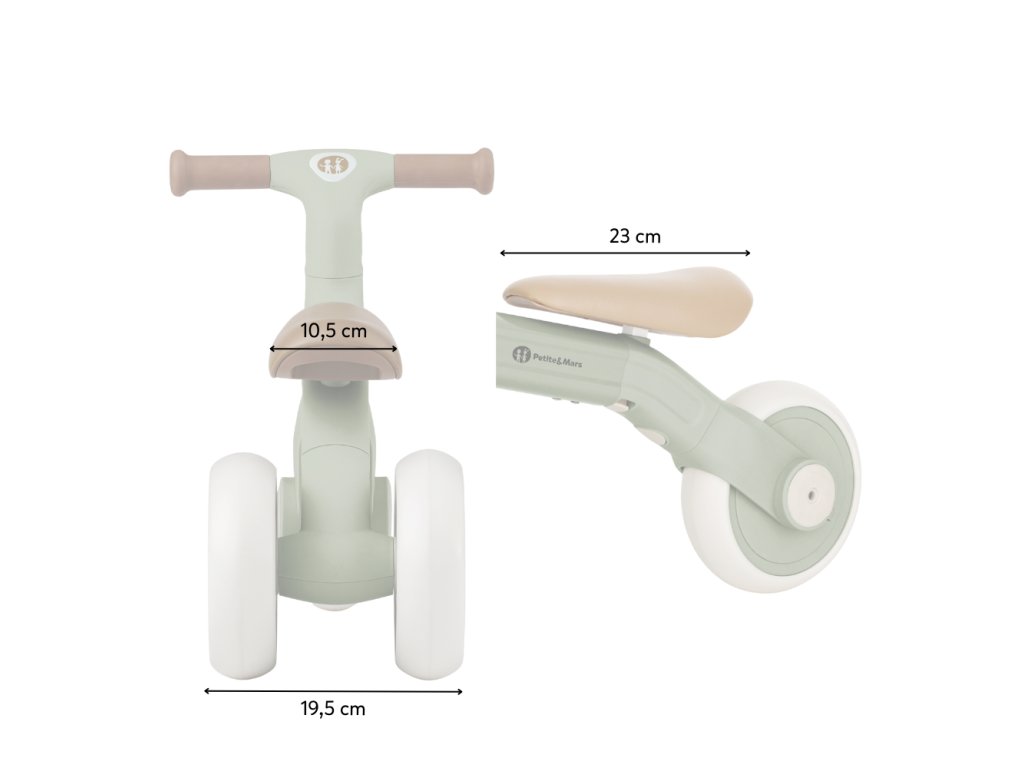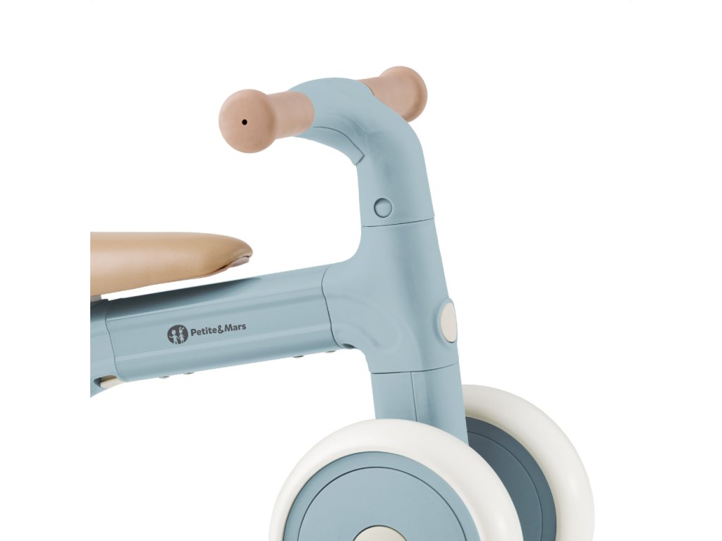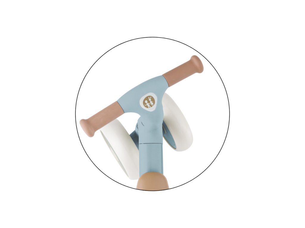 Bingo má otočná řídítka, dvě nastavitelné výšky sedla a váží jen 2,3 kg, takže ho rodiče bez problémů přenesou – i s taškou nebo dítětem v druhé ruce. Pěnová kolečka jsou tichá a zvládnou interiér i venkovní povrch. Celý design působí moderně, jemně a zároveň nadčasově.