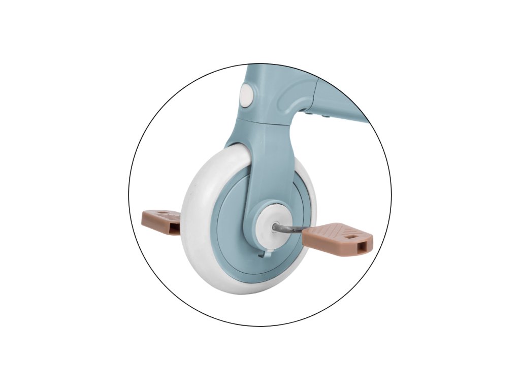 Na začátku slouží jako stabilní tříkolka (s možností upevnit dvě kolečka vpředu nebo vzadu) – ideální pro malé začátečníky, kteří teprve hledají rovnováhu a učí se důvěřovat vlastním nohám. Když dítě trochu povyroste a začne si být v pohybu jistější, lze Bingo jednoduše přestavět na klasické balanční odrážedlo. V této fázi se už odráží samo, reguluje si rychlost a trénuje koordinaci i směr. A když přijde ten správný čas, stačí nasadit pedály – Bingo se promění v jejich první kolo, na kterém si mohou vyzkoušet první šlapání. Vše zvládnete jednoduše a bez nářadí – jen pár pohybů a je hotovo.