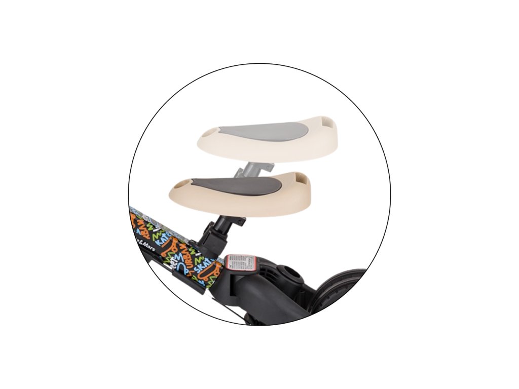 Bezpečnost a pohodlí Řídítka s protiskluzovými gumovými rukojeťmi jsou nastavitelná, pedály odnímatelné a sedlo se přizpůsobí výšce. Nastavitelné bezpečnostní pásy zajistí stabilitu a jistotu i při rychlejší jízdě. Odolná gumová kola poskytují hladkou jízdu na různých površích, ať už v dvou- nebo tříkolovém nastavení.
