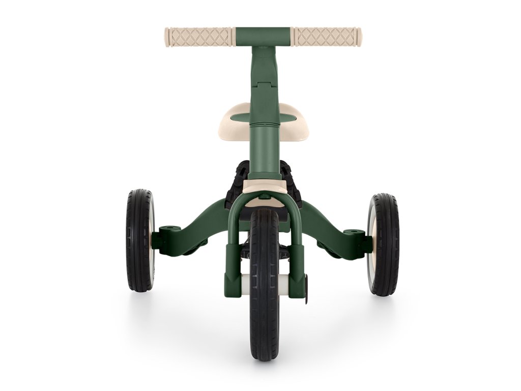 Multifunkční tříkolka určená pro děti od 1,5 do 5 let nebo do 25 kilogramů. Je to nejen dopravní prostředek pro přesun a učení se rovnováhy, ale také společník pro rostoucí dítě během mnoha vývojových fází. Promyšlené měnění se kola se přizpůsobuje potřebám děťátka podle toho, jak se vyvíjejí jeho motorické schopnosti. Zpočátku je to tříkolka s možností asistence rodiče, zatímco konečná verze je standardní kolo s pedály, bez jakýchkoli dalších podpůrných prvků. Díky takovým změnám můžete pomoci svému dítěti naučit se jezdit na dvou kolech.