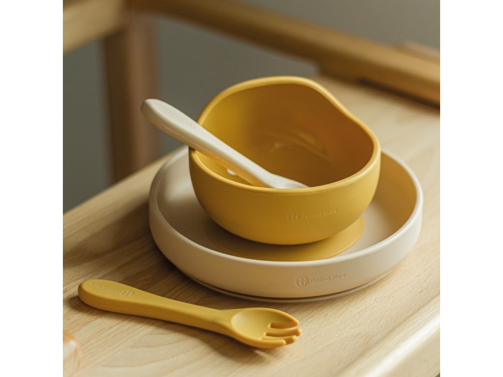 PETITE&MARS Miska silikonová s přísavkou TAKE&MATCH Intense Ochre 6m+