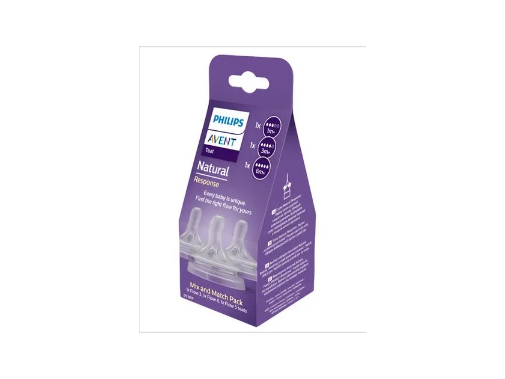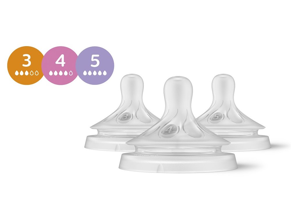 Každé miminko je jedinečné Ten správný průtok pro vás Tato sada vám pomůže najít ten správný rytmus pro vaše dítě a umožní vám snadný přechod, když se potřeby dítěte v průběhu růstu změní. Věk je jen jedním indikátorem, protože každé dítě má svůj vlastní rytmus pití. Snadná kombinace kojení a krmení z lahve Přirozené přisátí díky savičce ve tvaru prsu Savička uvolňuje mléko, když dítě aktivně pije Další výhody Vyberte pro vaše dítě dudlík se správným průtokem Konstrukce savičky zabraňuje kapání, rozlití mléka a jeho plýtvání Buďte trpěliví a nechte dítě, aby si zvyklo Vzduch neproniká do bříška dítěte Navržené ke snížení rizika koliky a bolavého bříška Důležité je najít správný dudlík Co je součástí Dudlík se středním průtokem: 1 ks Dudlíky s rychlým průtokem: 1 ks Dudlík se zvláště rychlým průtokem: 1 ks UPOZORNĚNÍ! - Neustálé a dlouhodobé sání tekutin způsobuje zubní kaz. - Před krmením vždy zkontrolujte teplotu jídla. - Při prvním náznaku poškození nebo opotřebení výrobek vyhoďte. - Nepoužívané součásti výrobku uchovávejte mimo dosah dětí. - Nikdy nespojujte se šnůrami, stuhami, tkaničkami nebo s volnými částmi oblečení, mohlo by dojít k uškrcení dítěte. - Nikdy nepoužívejte dudlík na krmení jako běžný dudlík. - Používejte tento výrobek vždy pod dohledem dospělých. Před prvním použitím vyčistěte výrobek a poté ho umístěte do vroucí vody po dobu 5 minut. Tím zajistíte nezbytnou hygienu. Po každém použití výrobek omyjte horkou mýdlovou vodou, odstraňte jakékoli zbytky výživy a důkladně opláchněte. Pokud používáte k čištění špičky krmícího dudlíku kartáček, čistěte dudlík co nejopatrněji, aby nedošlo k jeho poškození. Před každým použitím výrobek omyjte, abyste zajistili nezbytnou hygienu. Nedovolte dětem, aby si hrály s malými částmi nebo aby při používání lahví a pohárků chodily nebo běhaly. Neumisťujte výrobek do rozehřáté trouby nebo mikrovlnné trouby. Nepoužívejte agresivní čisticí prostředky. Nepokládejte součásti na povrchy vyčištěné antibakteriálními čisticími prostředky. Plastové obalové materiály mohou podléhat vlivu sterilizace a vysokých teplot. Před každým použitím výrobek zkontrolujte a natáhněte krmicí dudlík do všech směrů. Při prvním náznaku poškození nebo opotřebení výrobek vyhoďte. Doporučujeme měnit krmicí dudlíky každé 3 měsíce. Krmicí dudlíky uchovávejte v suché a uzavřené nádobě. Neponechávejte krmicí dudlík na přímém slunci, nevystavujte jej horku ani nenechávejte v dezinfekčním přípravku (sterilizační roztok) po delší než doporučenou dobu. Mohlo by to vést k opotřebení dudlíku. Adresa výrobce: Philips Consumer Lifestyle B.V., Tussendiepen 4, 9206 AD Drachten, The Netherlands, PH.CentralRegulatoryOfficer@philips.com