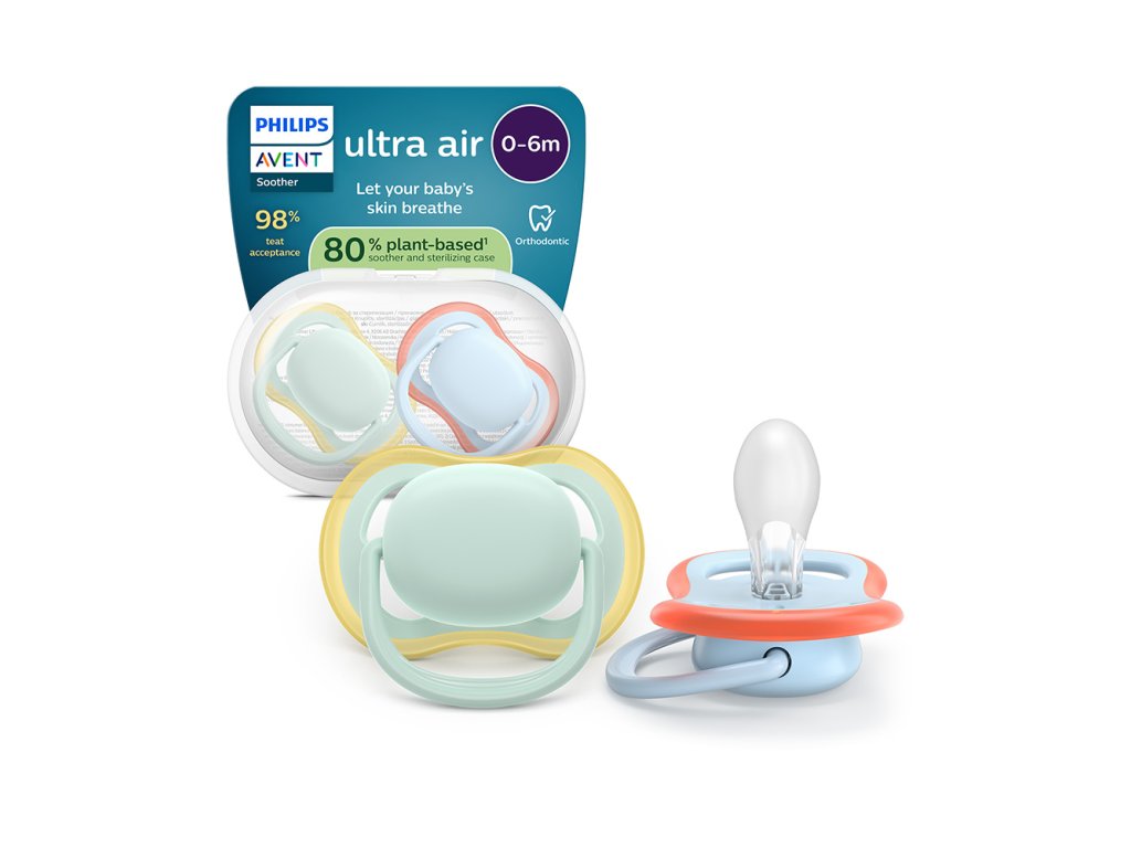 Když jsme se rodičů zeptali, jak jejich děti na náš silikonový dudlík s texturovanou povrchovou úpravou reagují, v průměru 98 % z nich odpovědělo, že jejich miminko šidítka Philips Avent Ultra Soft a Ultra Air přijímá.