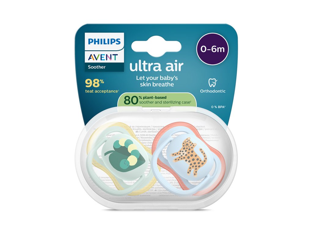 Mimořádně velké vzduchové otvory umožňují pohodlnější zklidnění. Uklidňuje a poskytuje dostatek vzduchu. Šidítko Philips Avent Ultra Air je vybaveno mimořádně velkými vzduchovými otvory, které udrží pokožku dítěte v suchu.