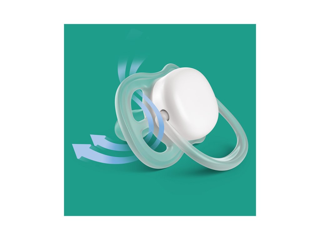 Mimořádně velké vzduchové otvory umožňují pohodlnější zklidnění. Uklidňuje a poskytuje dostatek vzduchu. Šidítko Philips Avent Ultra Air je vybaveno mimořádně velkými vzduchovými otvory, které udrží pokožku dítěte v suchu.