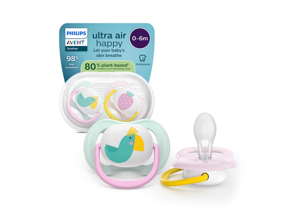 Když jsme se rodičů zeptali, jak jejich děti na náš silikonový dudlík s texturovanou povrchovou úpravou reagují, v průměru 98 % z nich odpovědělo, že jejich miminko šidítka Philips Avent Ultra Soft a Ultra Air přijímá.
