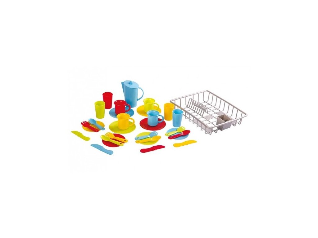 Écoiffier Sušička/odkapávač s nádobím do kuchyně Big Dish Drainer s doplňky 42 dílů, 18m+