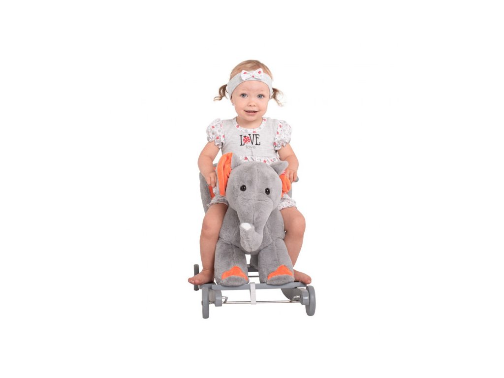 Neobyčejně krásný houpací sloník s kolečky PlayTo byl navržen pro děti, které mají rády dobrodružství. Pevné dřevěné lišty a rukojeti pomáhají dítěti udržet rovnováhu. Houpací lišty lze navíc jednoduše odšroubovat. Překlopením jednoduchého mechanismu na lištách vysunete kolečka, čímž ve vteřině změníte houpací hračku v jezdícího sloníka. Celá hračka je vyrobena z hebkého a velmi příjemného na dotyk plyšového materiálu. Po stisknutí ouška sloník zazpívá veselou písničku. Baterie jsou již součástí sloníka.