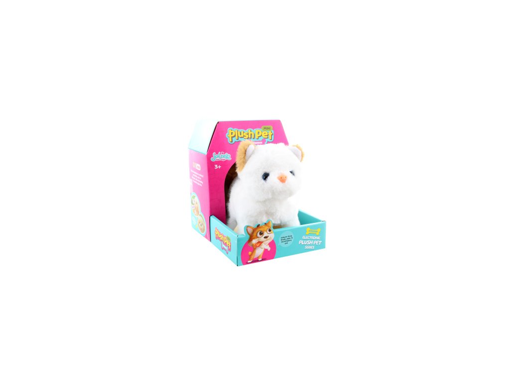 Chodící kočka na baterie. Po zapnutí kočka chodí, hýbe hlavou a ocáskem a vydává zvuky. Napájení na 2xAA baterie, které nejsou součástí balení. Materiál plast+plyš. Baleno v otevřené krabici ve tvaru boudičky. Součástí balení je plastová rybí kostra.