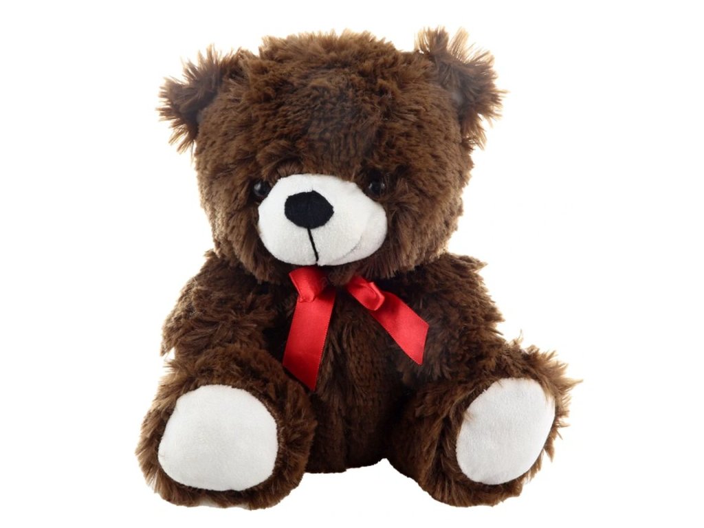 Plyšový Medvěd tmavě hnědý 25 cm, červená mašle, 0m+