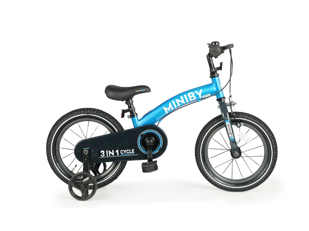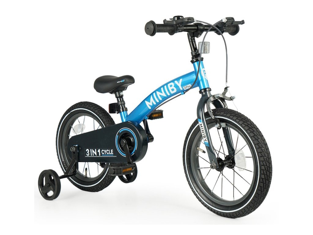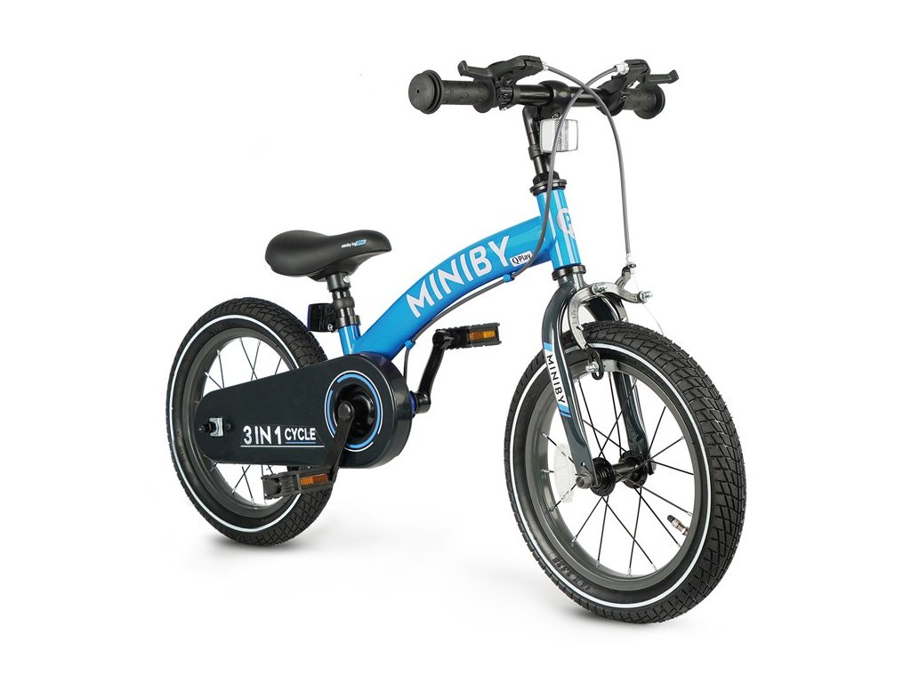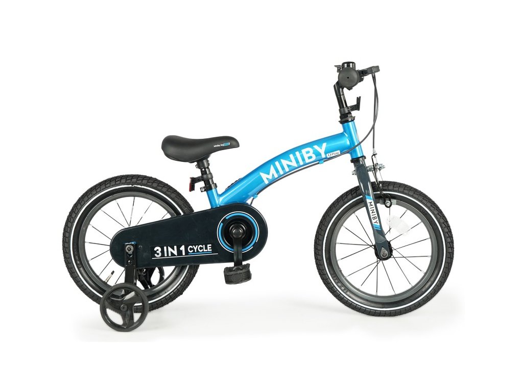 QPLAY Dětské kolo 14" MINIBY 3v1 Blue, věk 2 - 8 let