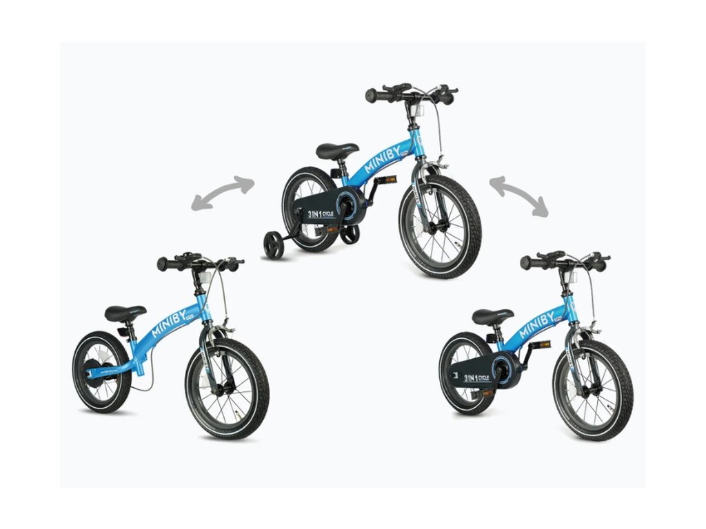 Představujeme kolo MINIBY 3v1 (14-palcové). Nastavitelná výška řídítek a sedáku pro rostoucí děti.