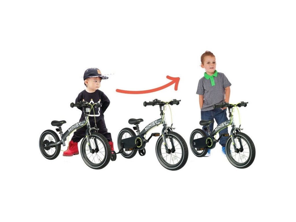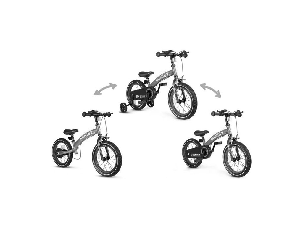 Představujeme kolo MINIBY 3v1 (14-palcové). Nastavitelná výška řídítek a sedáku pro rostoucí děti.Mezi bezpečnostní prvky patří uzavřený ochranný kryt řetězu, odnímatelné pedály, tréninková kolečka a dvojitý brzdový systém.Pneumatiky odolné vůči propíchnutí poskytují stabilitu v různých terénech. Všestranný a odolný společník pro jízdu navržen tak, aby rostl spolu s vaším dítětem.