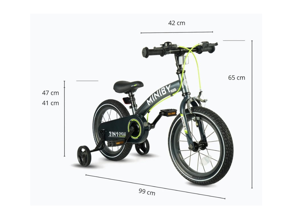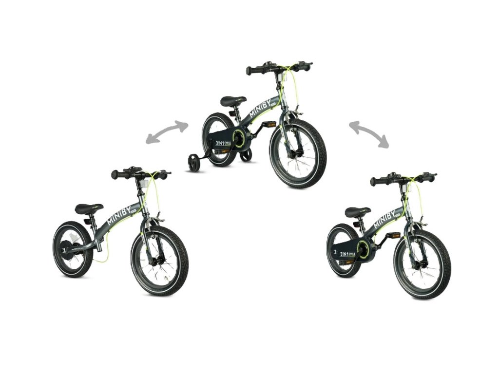 Představujeme kolo MINIBY 3v1 (14-palcové). Nastavitelná výška řídítek a sedáku pro rostoucí děti.