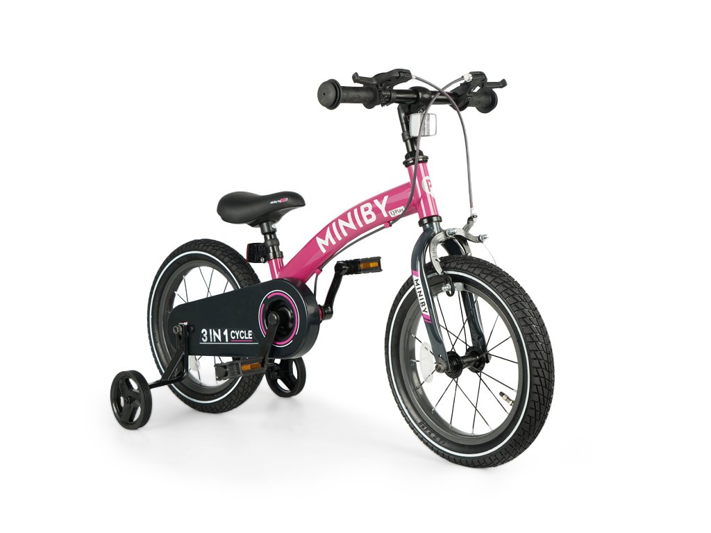 QPLAY Dětské kolo 14" MINIBY 3v1 Pink, věk 2 - 8 let
